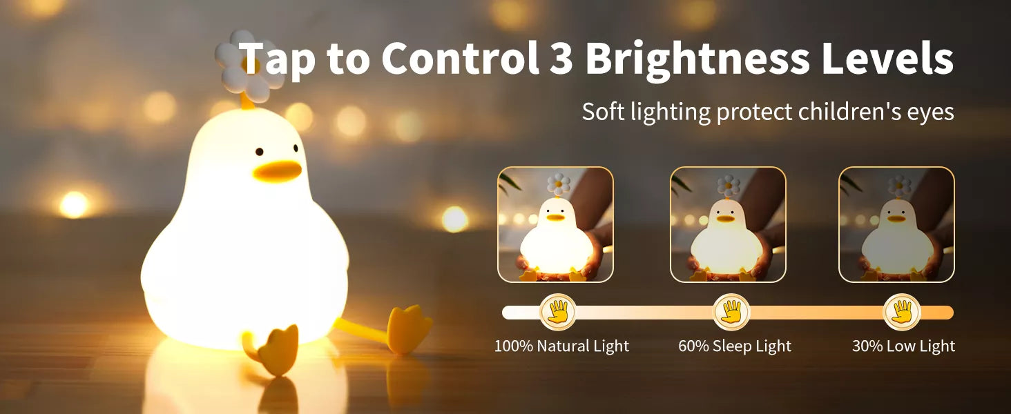 Touch-Activated Convenience: Experience the magic of simplicity with duck light. A single tap lets you adjust the brightness, turn the duck light on or off, making it an engaging and easy-to-use addition for both kids and adults.