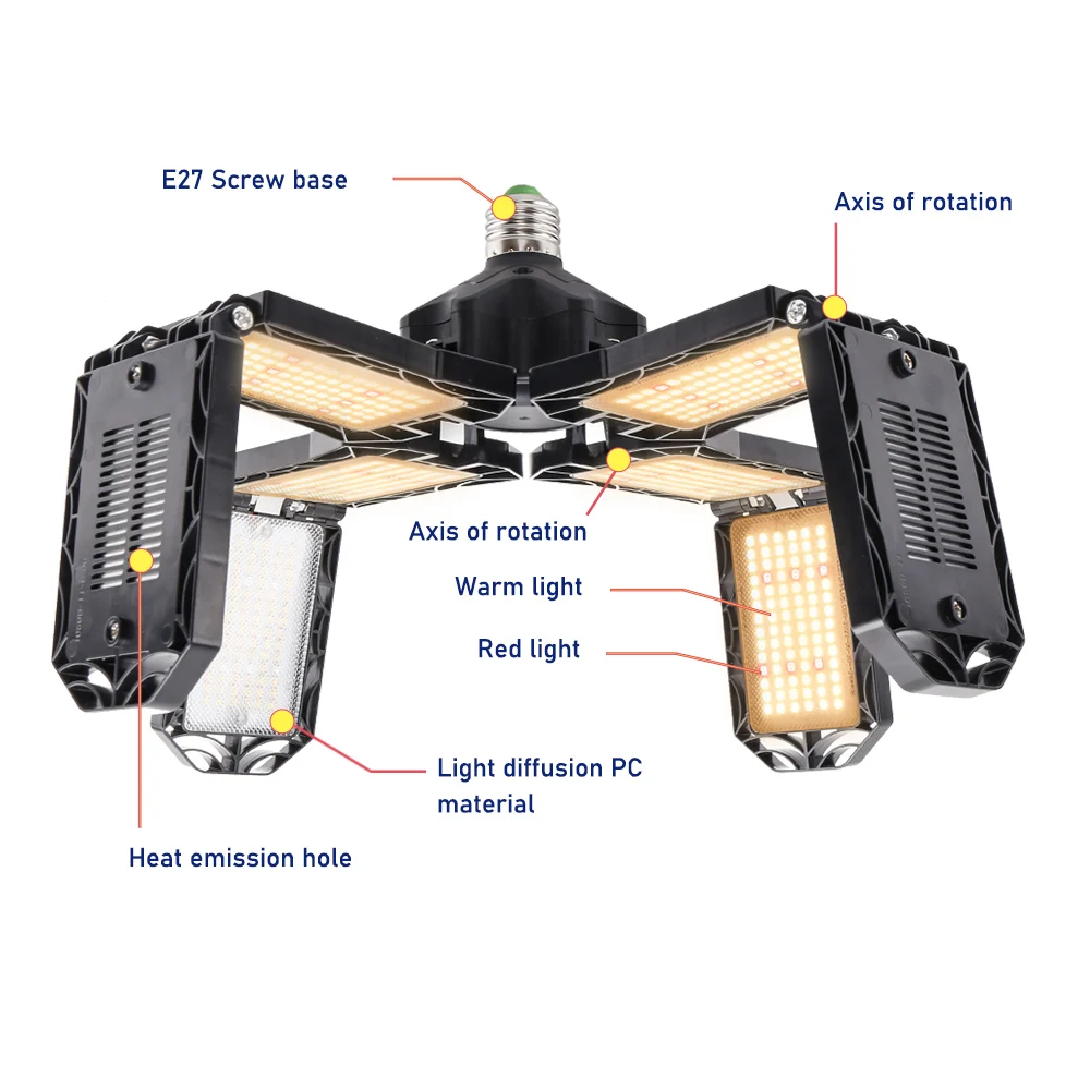 Full spectrum LED Foldable Deformable 8-leaf Plant Light for Home Indoor