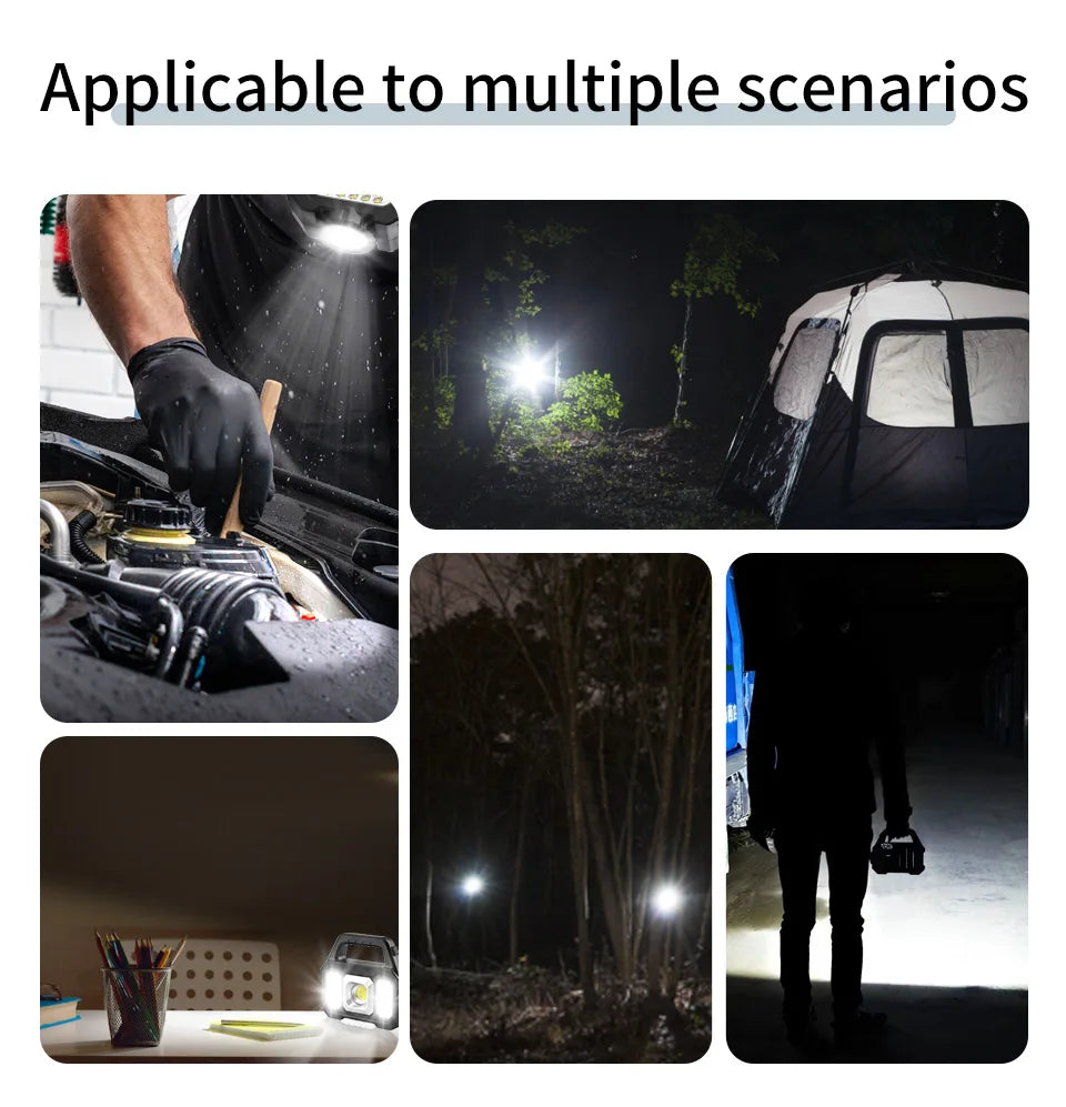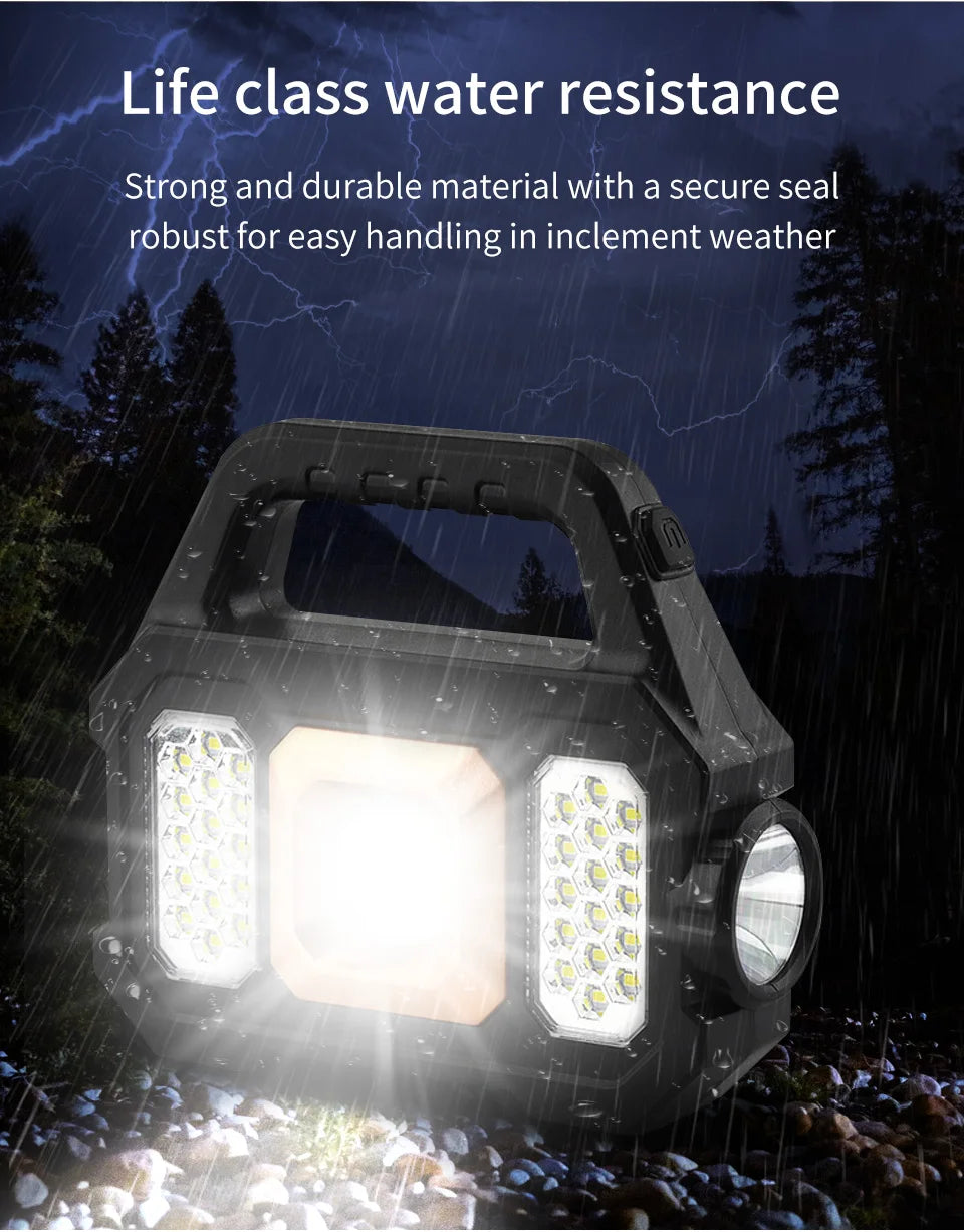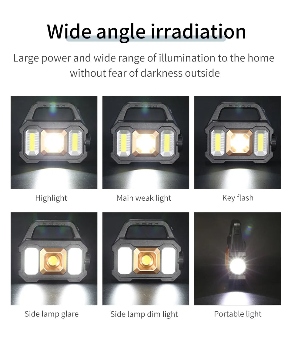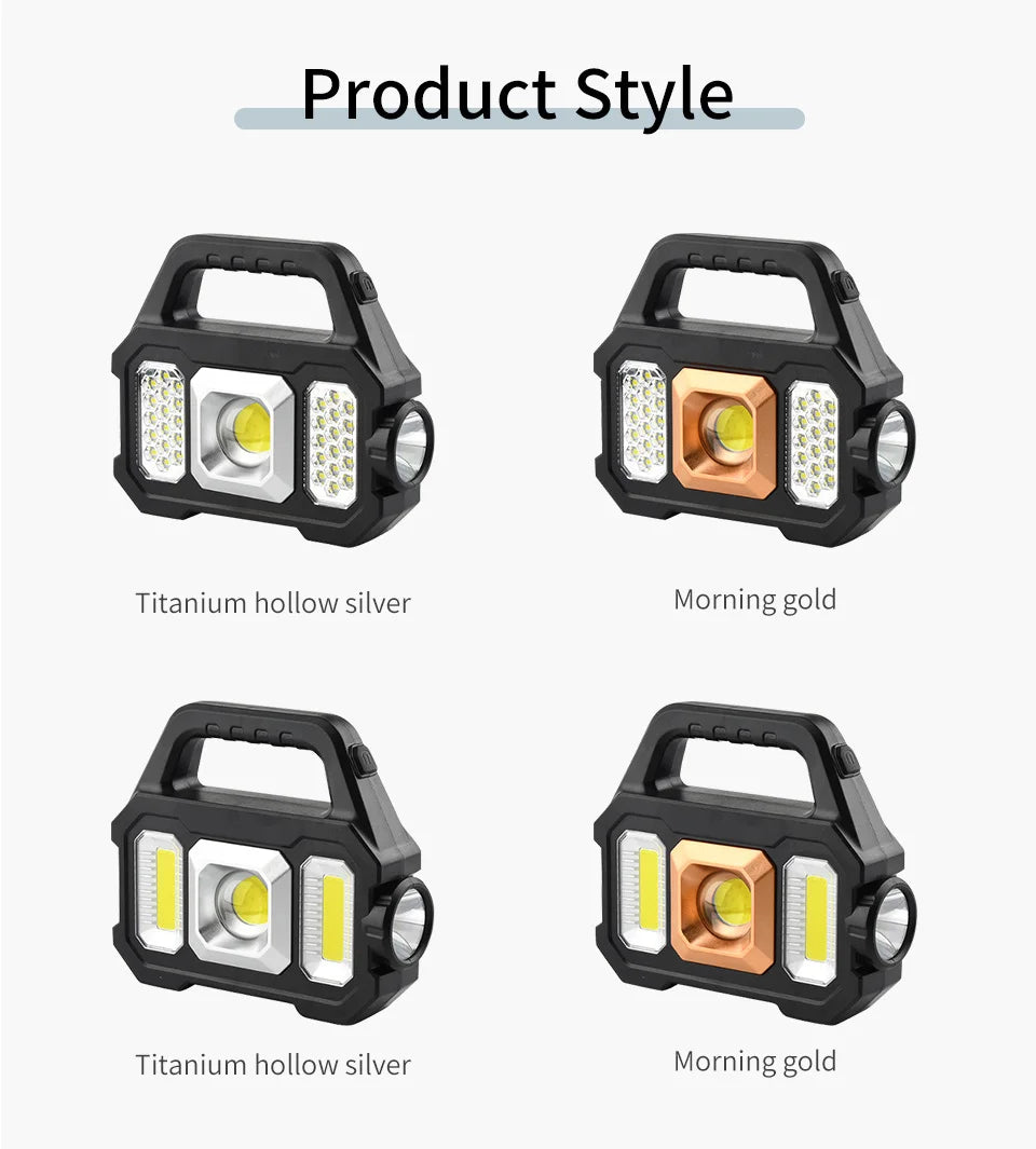 USB Rechargeable Solar Flashlight Waterproof 6 Gear COB LED Torch Light Portable Powerful Lantern Work Lights for Camping Hiking.
