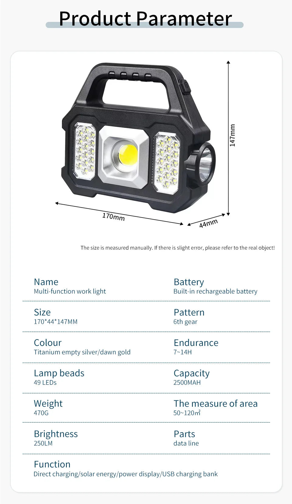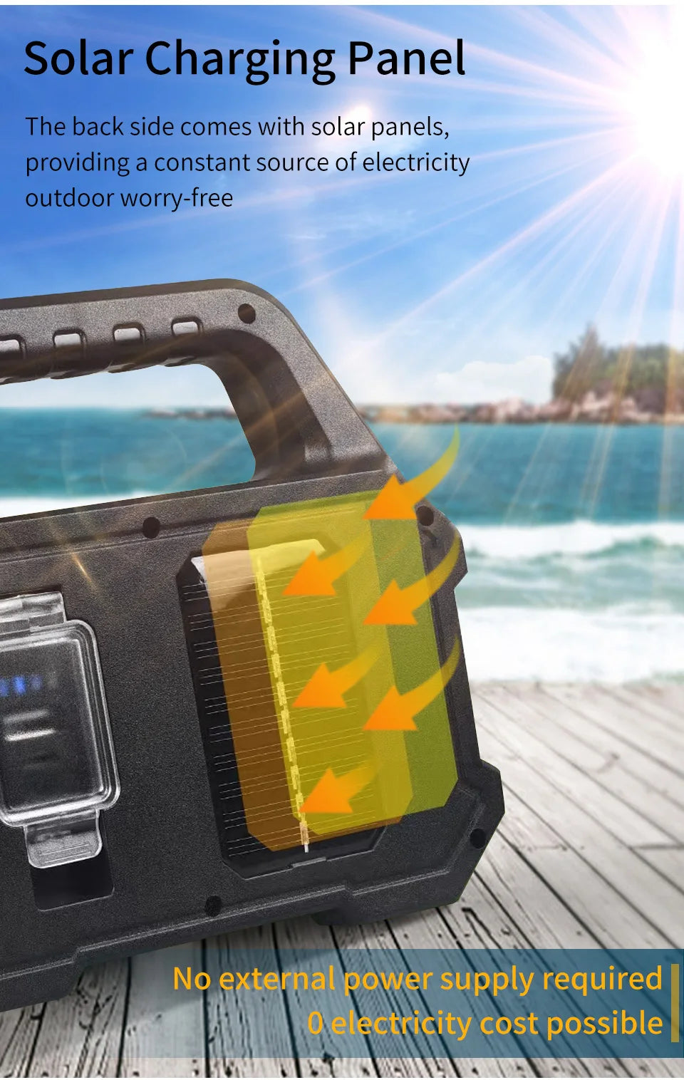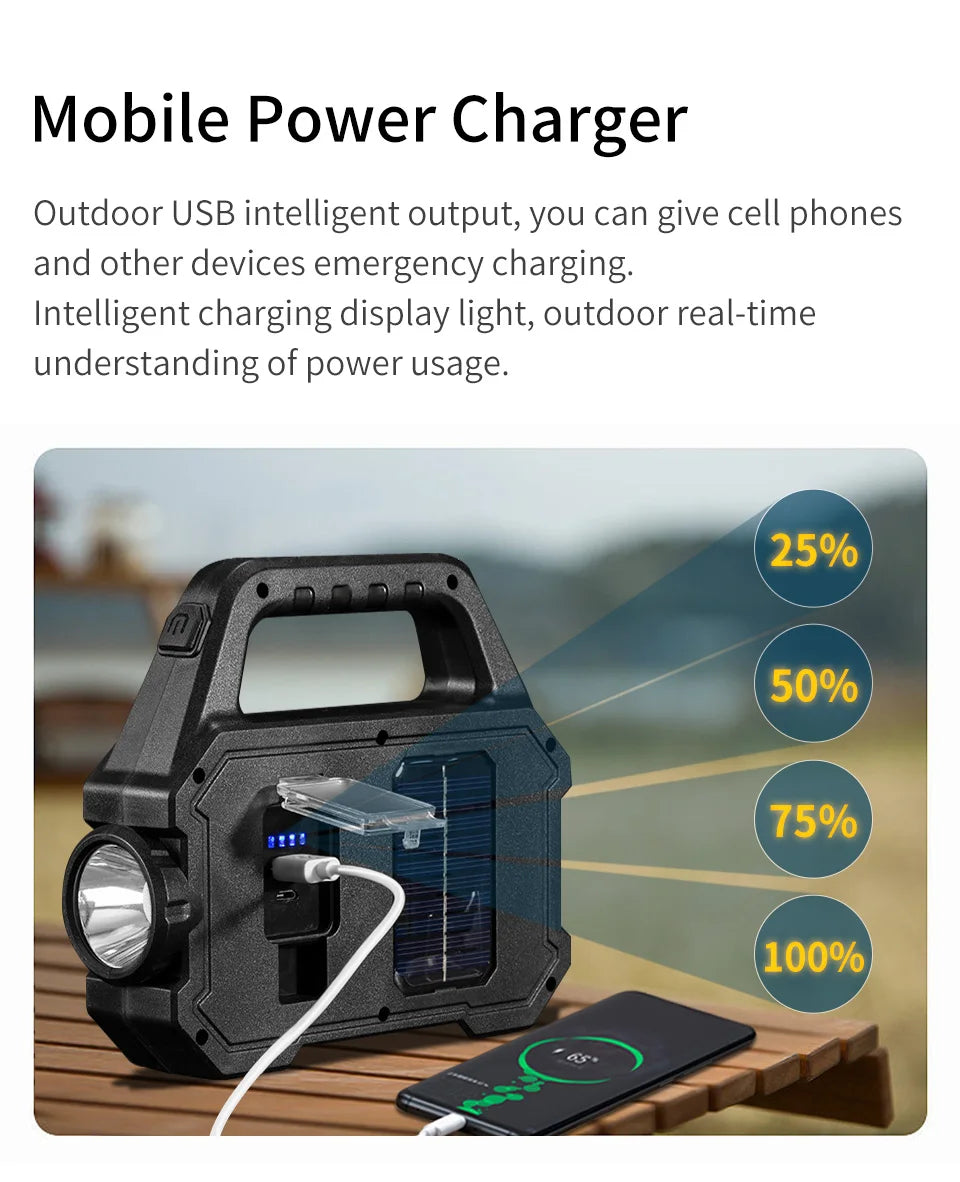 Product Title: LED Searchlight Solar + USB Rechargeable Camping Light Waterproof Outdoor Portable Light(2205)(different specifications are marked on the outer box)