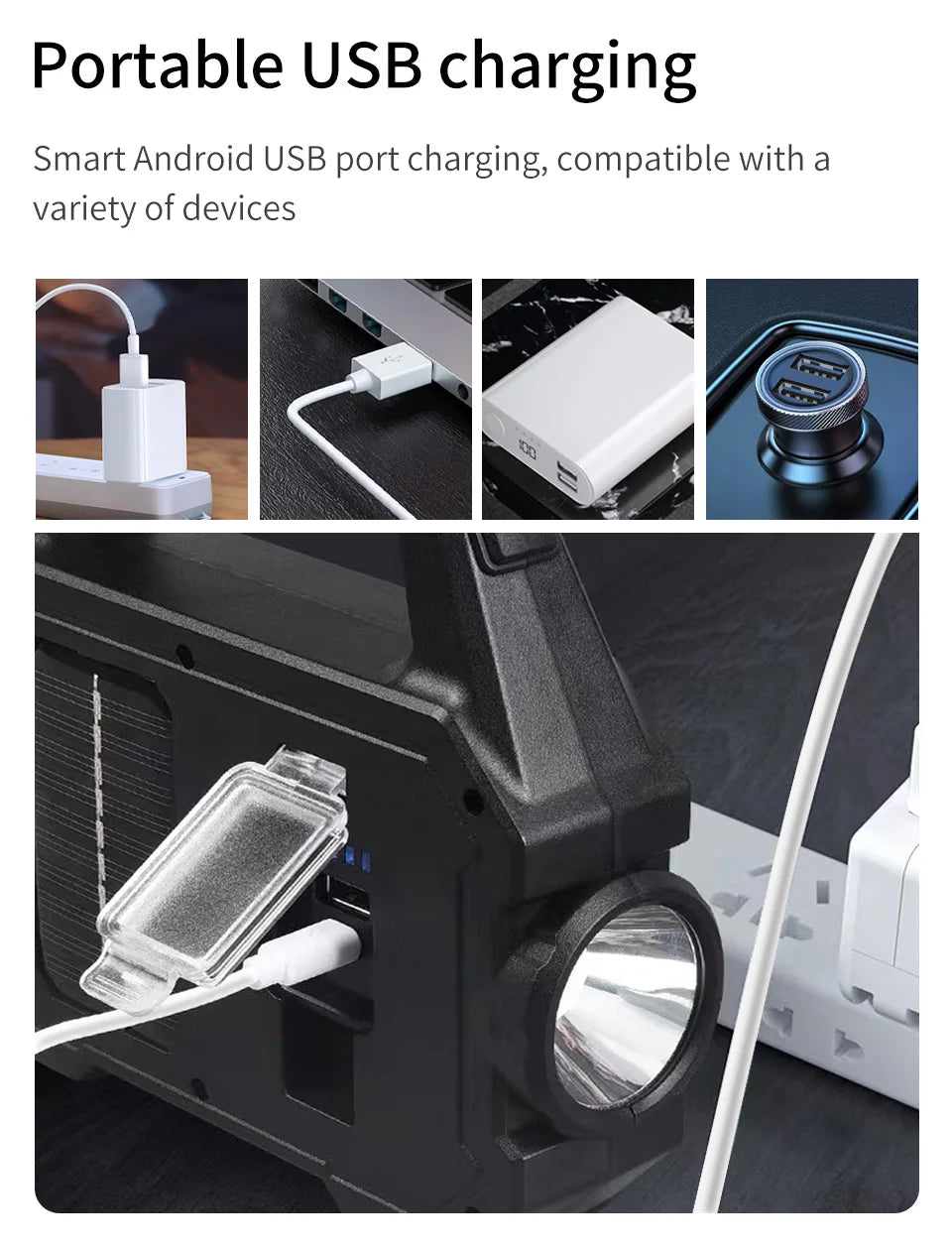 2. Two Charging Methods: Solar + USB charging.